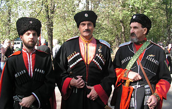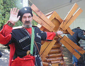 У атамана казачьего общества района Южное Медведково в Москве, казачьего полковника Александра Еськина времени на беседу почти не было: вместе с сотрудниками московской милиции он обеспечивал порядок на празднике. Но все же на ходу он поделился своей радостью: