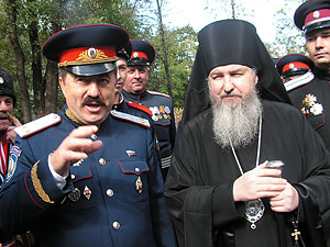 | Епископ Павлово-Посадский Кирилл и председатель Союза атаманов России Виктор Водолацкий |