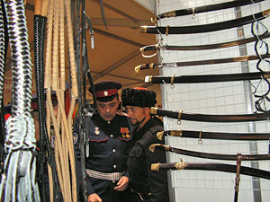 А в павильонах – сделанное (или выращенное и приготовленное) руками казаков: и изумительная ростовская финифть, и краснодарская роспись, и ювелирные шедевры церковного искусства из Приволжья, и костромской лен, и деревянные поделки из Сибири… Особо привлекали внимание стенды с казачьими шашками, саблями, нагайками, мужской и женской «справой», предметами казачьего быта. А уж даров природы, в том числе самых разных сортов меда, которые были привезены из Башкирии и с Дона, из Хабаровска и с Алтая и, как гласит народная мудрость, «тысячу хворей лечат», видимо-невидимо.